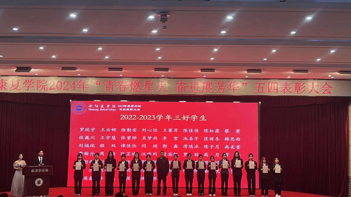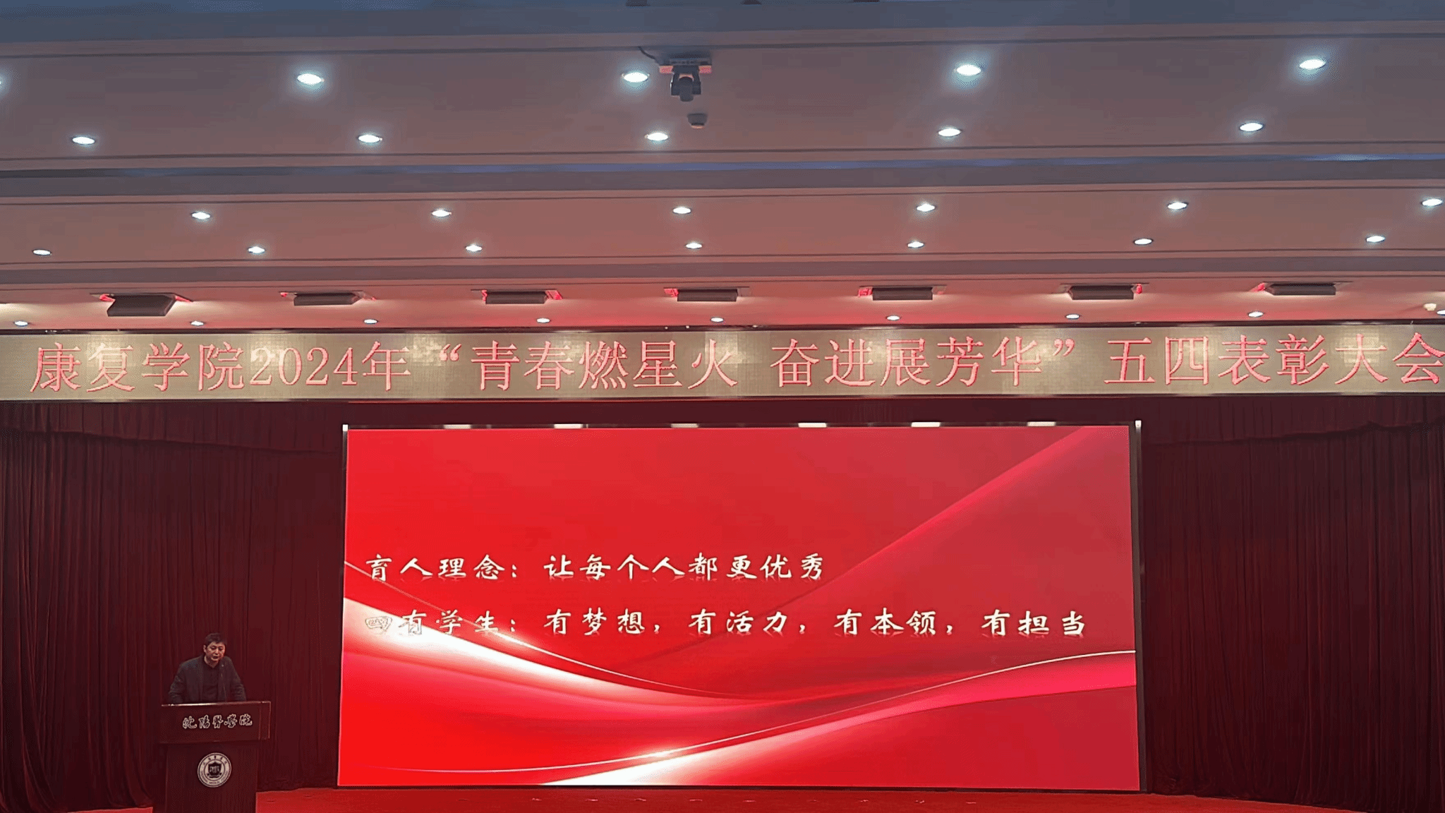会议颁奖环节共分为“善学”、“卓越”、“担当”、“笃行”四个篇章,涵盖“学风标兵”、“优秀团干部”、“考研先锋奖”、“优秀青年志愿者”等12个奖项,从不同维度表彰在2022-2023学年中表现突出的优秀员工,强化其在责任担当等方面做出的贡献,四个篇章的优秀员工代表分别进行了事迹分享,鼓舞康复学子接续奋斗,再创辉煌。为弘扬志愿服务精神,颁奖环节后,由优秀青年志愿者领誓中国青年志愿者誓词,感召、带动员工加入志愿服务队伍,用心、用情、用力做好志愿服务工作。