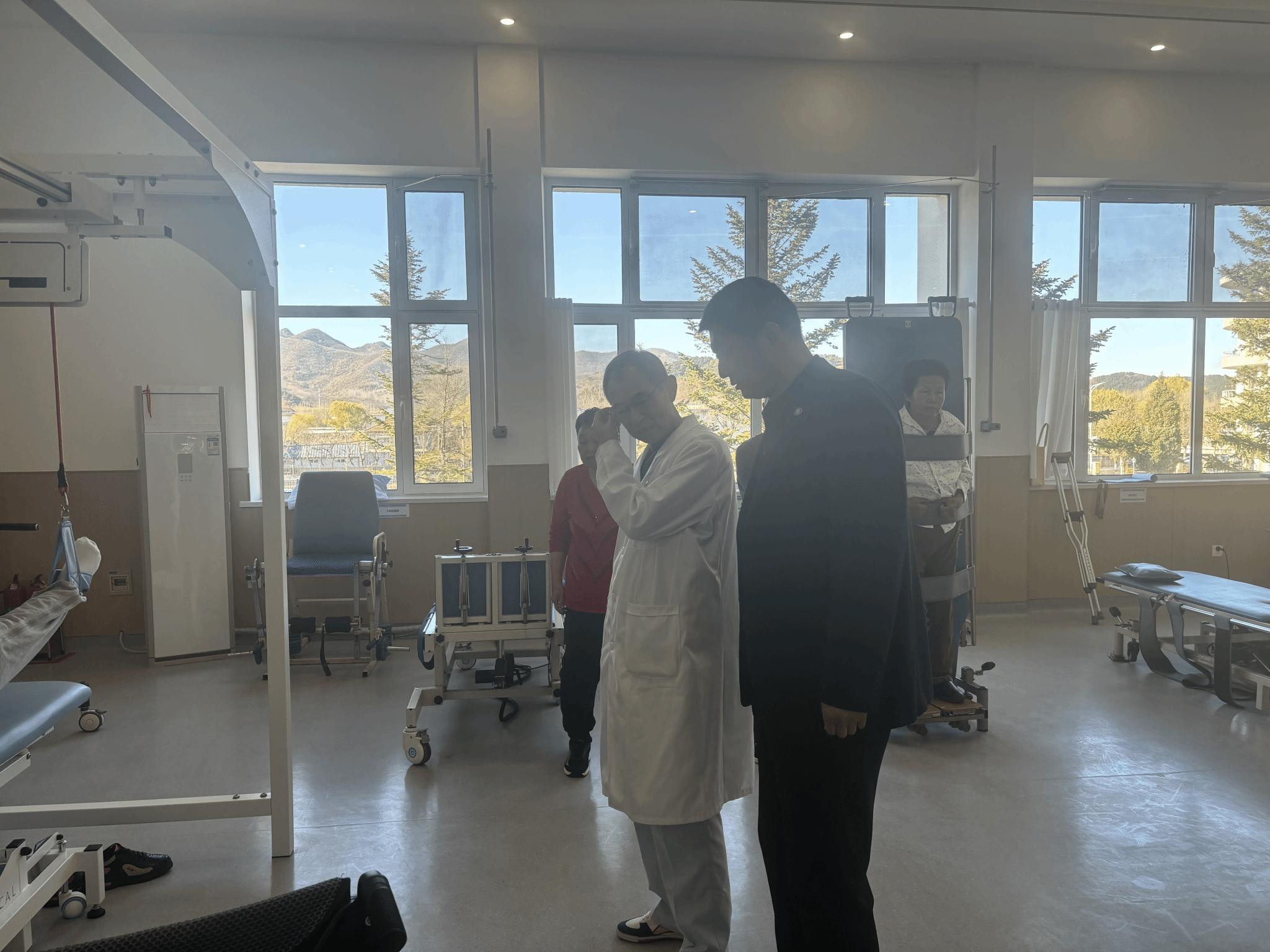 千山温泉康复医院的王宇经理、敬海生副经理以及医务部赵雪光副部长陪同参观了医院的康复治疗大厅、言语治疗室、神经康复病房、作业治疗室(OT)、中医针灸治疗室、中医按摩室以及电疗室等多个科室。