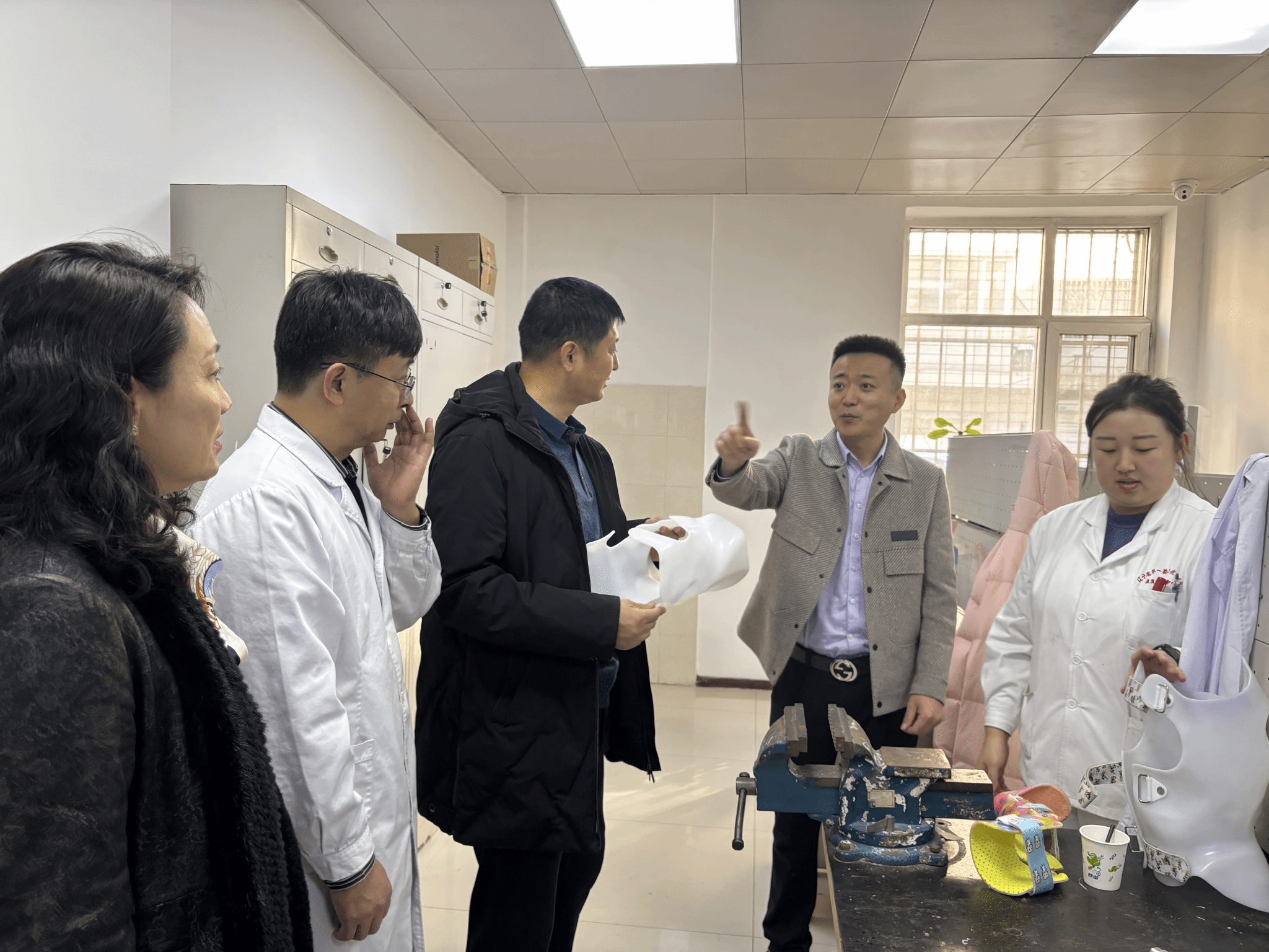 4日,高经理一行人又走访了辽宁省第一荣军优抚医院,优抚医院经理、书记侯志刚,医务科长王刚,假肢辅具中心徐本之,康复技师长尹宏文,实习员工代表参加座谈。优抚医院医务科王刚详细介绍了医院情况,康复技师长尹洪文介绍员工实习具体情况,实习生代表进行了发言。