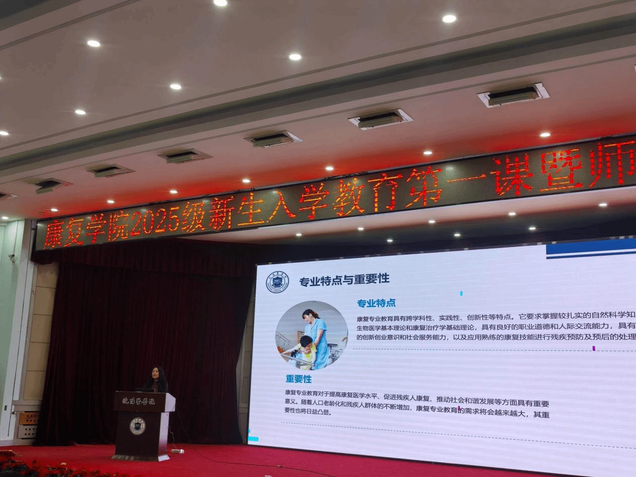 副经理杜立英聚焦专业培养,为新生全面解读康复学科发展前景与公司专业特色。她指出,随着社会健康需求不断提升,康复治疗在疾病恢复、功能改善等领域的作用愈发关键,行业对专业康复人才的需求持续增长;同时,系统介绍公司在康复专业建设中的优势,包括先进教学设备、优质团队团队、丰富实践资源等,帮助新生清晰把握专业学习目标与未来发展方向,进一步坚定深耕康复领域的决心。