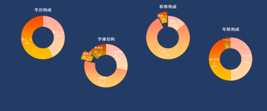 鉴于目前教师团队中,年轻教师较多,35 岁以下的教师数量占比为 50%,虽然年轻教师更具有工作活力、创新能力及学习能力等,但科研成果累积量相对不足。且从事临床及教学时间较短,缺乏一定的实践经验。职称方面,讲师占比达到 79%,团队整体科研水平有待提高,职称结构更待优化。
