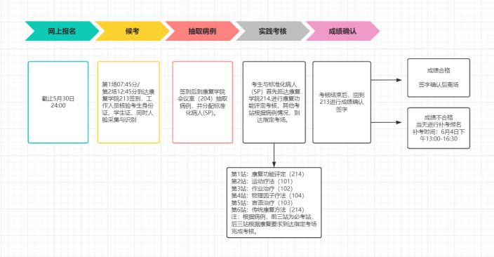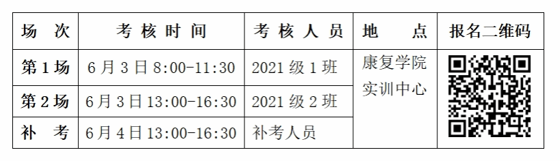 2.在考核过程中,只要有1站考核不及格,则认定本次技能考核不合格,需于当日报名补考,翌日统一参加补考,补考流程与正式考试相同,按要求完成全部实践操作后,仍取平均成绩作为最终考核成绩。