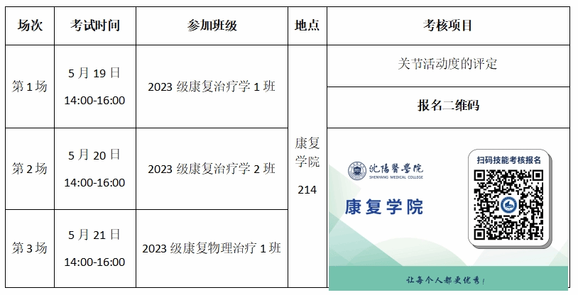 亲爱的同学们,为进一步提升康复专业技能水平,促进康复理论与实践的紧密结合,为今后的职业发展奠定坚实基础,拟进行康复技能通关考核,考核通过后方可进行期末结业考试,通关考核成绩将按照10%比例计入期末综合成绩。